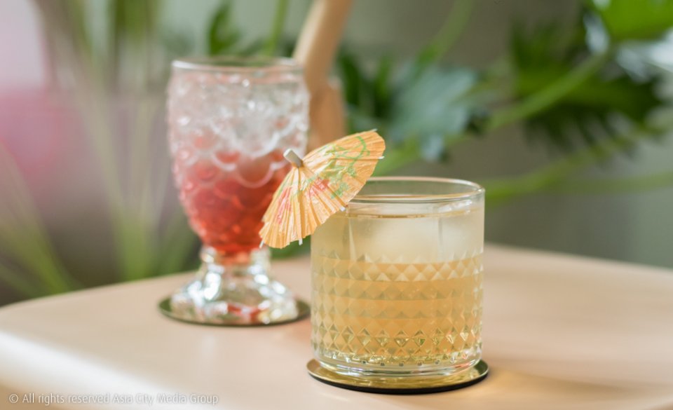 เครื่องดื่มสีสันสดใสเหมือนดอกไม้แรกแย้มอย่าง Spring (45 บาท) ที่เป็นน้ำลิ้นจี่ผสมราสเบอร์รี่และโซดา ให้รสชาติเปรี้ยวหวานซ่าสมกับเป็นโอเอซิสของคนที่ผ่านไปผ่านมาและคนที่ทำงานย่านนี้จริง ๆ