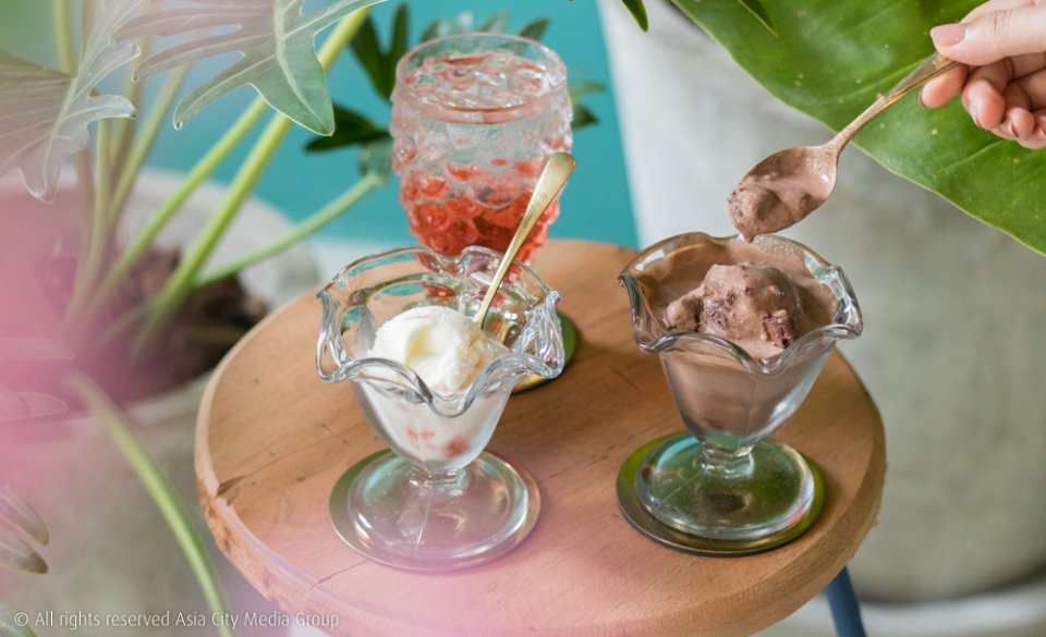 ส่วนไอศกรีมก็ดีงามไม่แพ้เครื่องดื่ม ทุกรสชาติเป็นไอศกรีมโฮมเมดที่ทางร้านคิดสูตรขึ้นมาเอง ที่สนุกคือรสชาติไอศกรีมจะหมุนเวียนเปลี่ยนไปตลอด มี 5-6 รสชาติให้ได้ลุ้นว่าวันที่ไปกินจะมีรสอะไรบ้าง ซึ่งส่วนใหญ่จะเป็น milk bases และ sherbet รับรองว่าสายช็อคโกแลตจะต้องปลื้มรส Chocolate Brownie ไอศกรีมรสช็อคโกแลตที่เพิ่มความฟินด้วยเนื้อบราวนี่เน้น ๆ