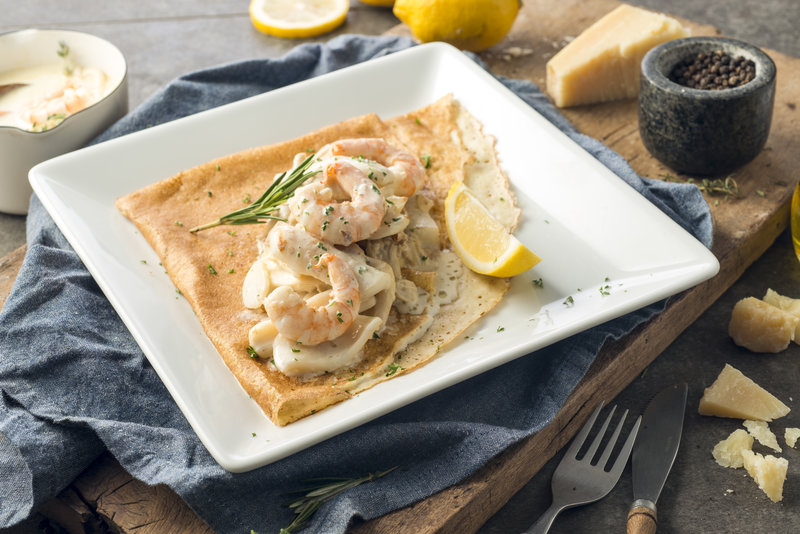 เครปสัญชาติฝรั่งเศสสไตล์โมร็อกโกสูตรใหม่เอี่ยมอ่องจากทาง Crepes & Co. เป็นเครปแป้งบักวีตที่ให้กลิ่นและรสชาติแบบธัญพืชได้ชัดเจน ในเซ็ตนี้จะเสิร์ฟมาพร้อมมะเขือม่วงย่าง ข้าว Couscous และไส้กรอกโมร็อกโกที่หาทานได้ยากมากในกรุงเทพ ฯ
