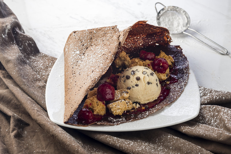 มาถึงในส่วนของ Sweet Crepe ซึ่งเป็นเมนูของหวานที่เราแสนจะโปรดปรานจนเลือกไม่ถูกกันเลยทีเดียว แต่ตัวนี้คือ Josephine เป็นเมนูที่เราสั่งซ้ำ ๆ ไม่ว่าจะกลับมากี่รอบ แค่เห็นส่วนประกอบหลักอย่าง กล้วย ไอศกรีมวนิลา ครีมเกาลัด และช็อคโกแลตเบลเยี่ยม ก็แทบจะไม่ต้องคิดให้มาก สั่งมาโลด !