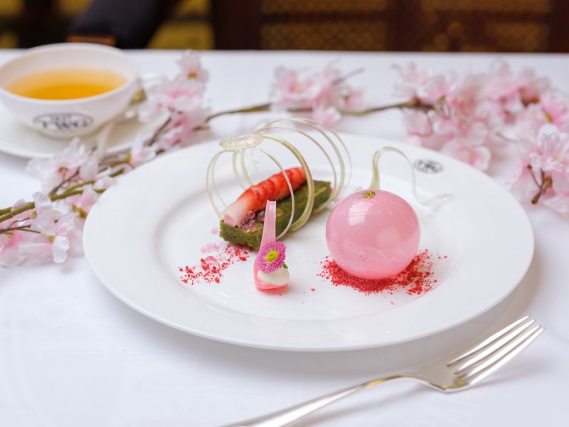 แต่ TWG TEA เขาไม่ได้จัดมาแค่ชาดี ๆ เท่านั้น แต่ยังมีเซ็ตขนมหวานที่ได้รับแรงบันดาลใจมาจากดอกซากุระเช่นกันด้วย กับ "เดอะ บลูมมิ่ง เมล" (The Blooming Tale) ที่ในเซ็ตประกอบไปด้วยบราวนีชาเขียวเนื้อนุ่ม หอมกลิ่นดอกไม้แรกแย้ม ท็อปด้วยครีมสดผสมซากุระ! ซากุระ! ที เสิร์ฟพร้อมกับสตรอเบอรี่สด และซอร์เบต์ซากุระที่ซ่อนอยู่ด้านในโดมสีชมพู เราชอบตรงที่บราวนี่กลิ่นดอกไม้แต่รสชาเขียว มันคือศูนย์รวมของความสดชื่นในชิ้นเดียว พอชิมพร้อมกับซอร์เบต์หวานอมเปรี้ยวเย็น ๆ ก็เข้ากันมากทีเดียว