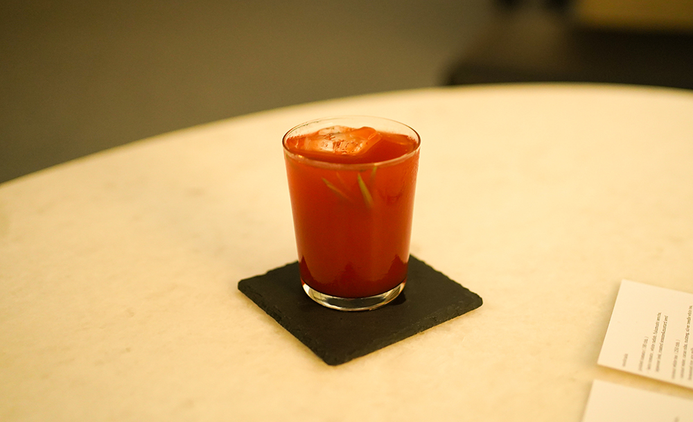 สำหรับแก้วปราบเซียนขอยกให้กับ Pickled Tomato (190 บาท) ที่ทางร้านก็กระซิบเตือนเรามาก่อนแล้วว่า แก้วนี้เขาแรงจริง! โดยเป็นส่วนผสมระหว่าง มะเขือเทศดอง (Lacto Tomatoes) หัวไชเท้า ชา Fukamushi Sencha ต้นหอมญี่ปุ่น เมล็ดมัสตาร์ด และงาคั่ว