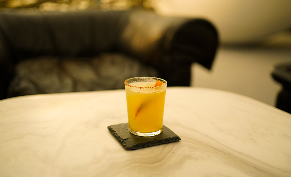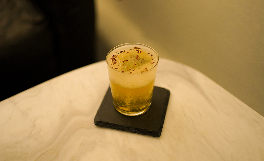 2 แก้วแรกที่ผ่านมา จะเป็นแก้วที่ดื่มง่าย คนไม่คุ้นเคยกับม็อกเทลก็เอ็นจอยได้ง่าย ๆ แต่เตรียมตัวให้ดี 2 แก้วหลังนี้ เป็นแก้วที่เราขอบอกว่า ใครอยากลองโดนของแรงของบาร์เทนเดอร์ที่นี่ ต้องไม่พลาดสั่งมาลอง! โดยแก้วแรกก็คือ Pineapple Popcorn (220 บาท) ที่เป็นการประกอบร่างกันระหว่าง น้ำสับปะรด ป็อปคอร์น ชาผู่เอ๋อร์ น้ำส้มสายชูหมักจากข้าว พริกเหลือง เกลือ และปาปริกา แก้วนี้ถือเป็นแก้วที่จิบได้เพลิน ๆ ด้วยความหวานของน้ำสับปะรดกับกลิ่นหอมของป็อปคอร์น แต่จะเจอเซอร์ไพรส์เป็นความเผ็ดซ่าลิ้นเล็ก ๆ ถือเป็นการกระตุ้นให้ตื่นในช่วงบ่ายได้ดี