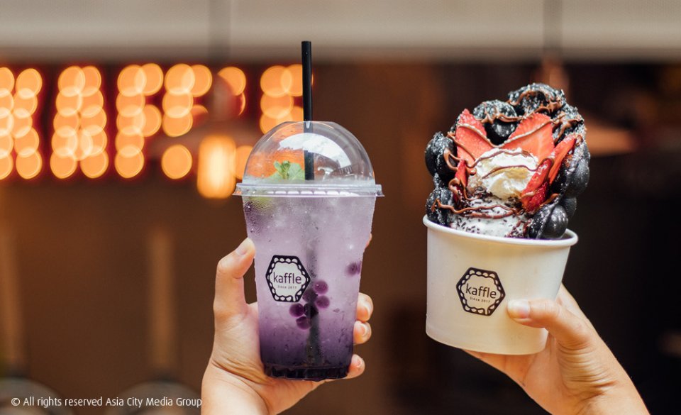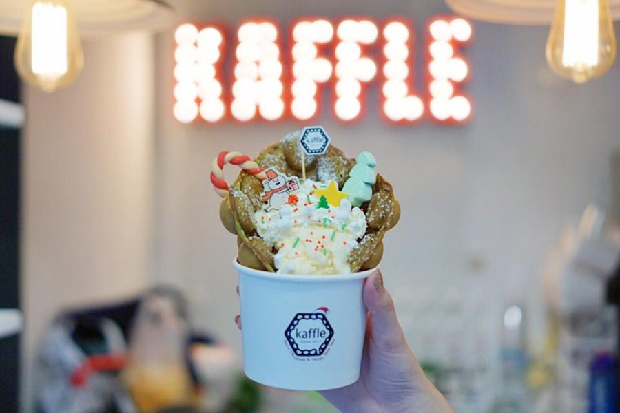 เราชอบที่วาฟเฟิลสไตล์ฮ่องกงของที่นี่เน้นเป็นสูตรหวานน้อย แถมยังกรอบนอกนุ่มใน (พิสูจน์จากการทิ้งไว้ครึ่งชั่วโมงก็ยังกรอบอยู่) ทีเด็ดคือท็อปปิ้งจัดเต็มเหมือนไม่กลัวขาดทุน มีแป้งให้เลือกถึง 3 แบบคือ Original, Charcoal และไฮไลท์คือตัว Seasonal อย่างช่วงปลายปีนี้ก็จะเป็นแป้งใบเตยสีเขียว พร้อมท็อปปิ้งมุ้งมิ้งให้เข้าธีมคริสต์มาส