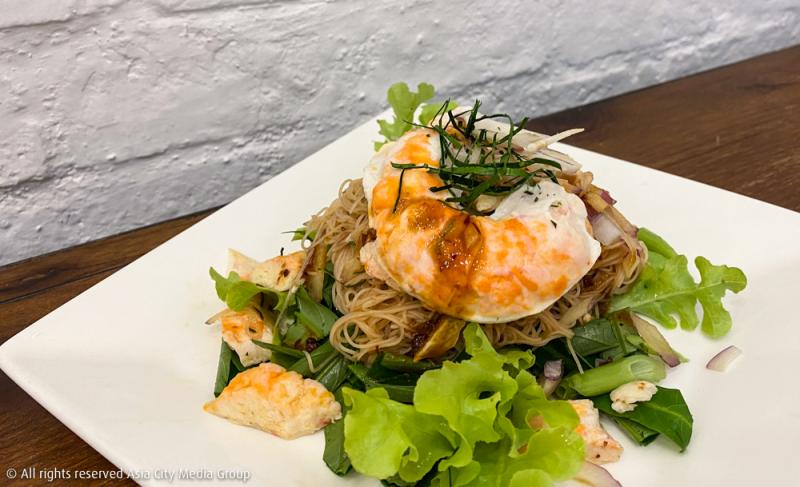 ส่วนใครที่อยากทานของหนักก่อนออกไปดูแลตัวเองในตึก เราแนะนำให้ลองสั่งเมนูอิ่มท้องอย่างเส้นหมี่ข้าวกล้องสวนกุ้ง (279 บาท) ที่รับรองว่าต้องถูกใจชาวเฮลท์ตี้สายแซ่บแน่นอน เพราะถึงแม้เมนูนี้จะไม่ได้ใช่เนื้อสัตว์จริง ๆ และเลือกใช้เป็นเส้นหมี่ที่ทำจากข้าวกล้อง แต่ไม่รู้ร้านนี้เขาทำยังไงถึงปรุงรสชาติออกมาได้จี๊ดจ๊าดนัวลิ้นเหมือนไม่ได้กำลังกินอาหารสุขภาพอยู่เลยแม้แต่น้อย!