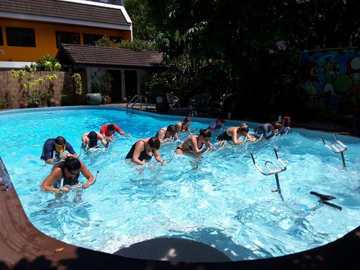 เปลี่ยนประสบการณ์การออกกำลังกายแบบเดิม ๆ มาเป็นออกกำลังกายในน้ำกันบ้างสิ! ที่ Aquabike เราจะได้ปั่นจักรยานในน้ำเผื่อเพิ่ม intensity ในการออกกำลังกายเมื่อเทียบกับในโรงยิม นอกจากนี้ยังลดแรงกระแทกของข้อต่อและเส้นเอ็นอีกด้วย พาคุณแม่ไปเล่นด้วยกันได้สบายๆ มีทั้ง Aquabike RPM สำหรับคนที่อยากลดน้ำหนัก และ Aquabiking Sculpt ซึ่งจะมีการนำดัมเบลมาประกอบในการออกกำลังกายสำหรับคนที่อยากเพิ่มความเฟิร์ม