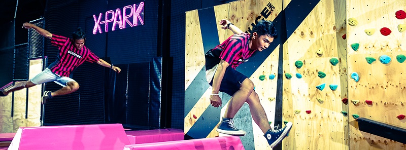 หลายคนน่าจะพอรู้จักกับแทรมโพลีนปาร์คนำเข้าจากประเทศออสเตรเลียอย่าง "Bounce" กันแล้ว มีให้เลือกฟิตกันถึงสองสาขาที่ The Street Ratchada และสาขาใหม่ล่าสุดที่ EmQuartier ถึงแม้ว่าขนาดสตูดิโอจะเล็กกว่าซักนิด และไม่มีผนัง clip & climb ให้เราปีนป่าย แต่รับรองว่ายังสนุกสนานกับการกระโดดตีลังกากันได้ไม่แพ้กันเลยกับโซน “free-jumping” แบบฟรีสไตล์บน 80 แทรมโพลีนขนาดยักษ์ หรือจะวิ่งขึ้นกำแพงและเล่นดอดจ์บอลโดยไม่ต้องแคร์แรงโน้มถ่วงก็ได้สนุกและเสียเหงื่อไปพร้อมๆ กัน ว่ากันว่าเผาผลาญได้เทียบเท่าการเล่นคาร์ดิโอเลยนะ