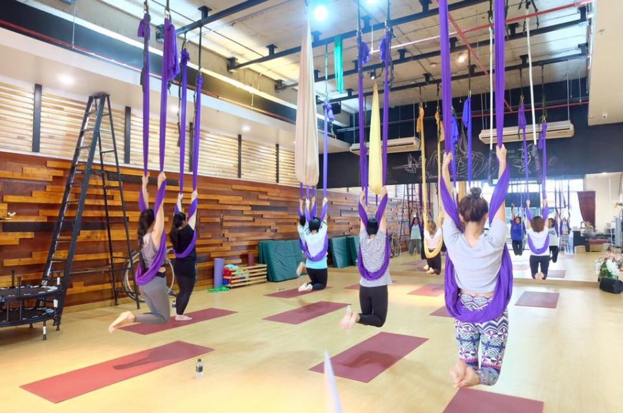 อาจจะไม่ใช่เวิร์กเอาท์ที่ใหม่ซะทีเดียว เพราะเทรนด์การออกกำลังกายแบบ yoga fly นั้นมีกระแสเข้ามาในไทยตั้งแต่ต้นปี 2014 แต่ I’m Fly Studio แห่งนี้เพิ่งเปิดสตูดิโอใหม่ในย่านพระราม 3 ภายในหนึ่งคลาสนั้นจะใช้เวลาประมาณ 1 ชั่วโมง นักเรียนทุกคนจะได้ฝึกใช้กล้ามเนื้อทุกส่วน โดยเฉพาะช่วงกล้ามเนื้อท่อนบน และช่วงสะบัก โดยเราสามารถเลือกความยาก-ง่ายได้ทั้งหมด 3 ระดับ ดังนั้นไม่ต้องกลัวว่าจะตามเพื่อนๆ ไม่ทันนะ