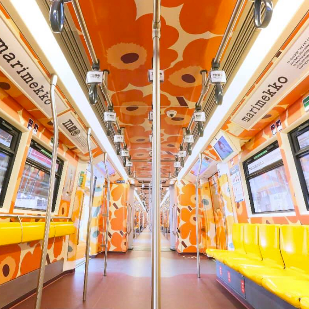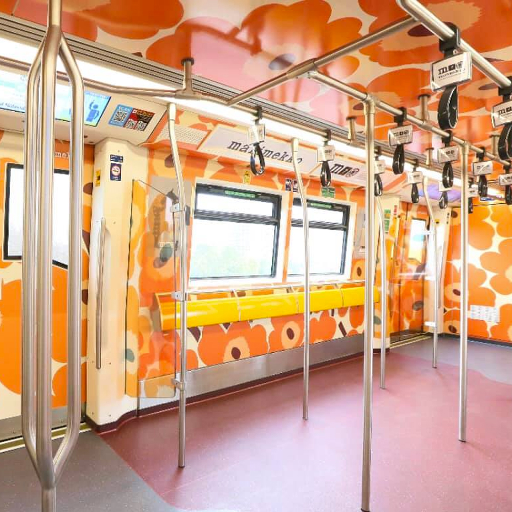 สำหรับโปรเจกต์การแรปรถไฟฟ้าบีทีเอสของ Marimekko นี้ก็ไม่ใช่ครั้งแรกด้วย เพราะก่อนหน้านี้เขาเคยแรปขบวนรถไฟฟ้าด้วยลวดลายดอกไม้ของ Marimekko มาแล้ว แต่ความพิเศษเนื่องในโอกาส 7 ทศวรรษ Marimekko นี้ ก็คือการที่เขาได้เลือกลายพิมพ์ของดอก Unikko หรือดอกป๊อปปี้ ที่ใครเห็นก็จำได้เลยว่าเป็นแบรนด์ Marimekko มานำเสนอในในโทนส้ม ซึ่งเป็นสีประจำซีซันล่าสุด เพื่อที่จะ 'Bringing Joy to Everyday Life' ตามคอนเซปต์ของแบรนด์นั่นเอง