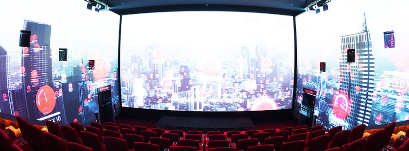 โรงถัดมาคือ True Screen X (350 บาท/คน 800 บาท/คู่) สัมผัสประสบการณ์การดูหนังแบบ 270 องศา ซึ่งเป็นการรวมพลังกันของโปรเจ็กเตอร์ 9 เครื่อง และจอหนัง 3 จอ เทคโนโลยีแอดวานซ์มากจริง แต่เราขอกระซิบว่าไม่สามารถดูได้ทุกเรื่องนะ ถ้าหนังไม่ได้เตรียมมาฉายแบบ 270 องศา ก็อดไปตามระเบียบจ้า