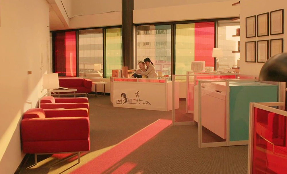 ความงดงามอีกประการหนึ่งในงานภาพของ Her คือการใช้สีแดงเข้ามาผสมในทุกฉาก โดยสีแดงก็เป็นสีที่สื่อถึงอารมณ์ในห้วงรัก ความปรารถนา และความโกรธ ซึ่งเป็น 3 อารมณ์ ที่ตัวละครธีโอดอร์รู้สึกผสมปนเปกันไปในแต่ละฉาก