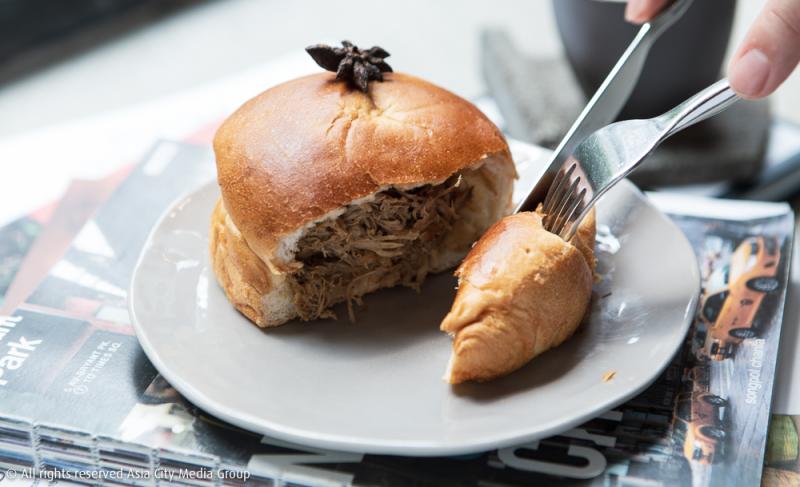 ความดีงามอีกหนึ่งสิ่งของคาเฟ่นี้คือครัวกลางที่แชร์พื้นที่ในการทำอาหารได้ทั้งร้านพี่ร้านน้อง ใครอยากได้มื้อหนักก็แค่เปิดประตูออกไปอีกร้านสั่งอาหารได้เลย สำหรับเมนูซิกเนเจอร์ที่หากินที่ไหนไม่ได้อย่าง Hong Kong Ducky Bun (95 บาท) ขนมปังก้อนกลมโตเนื้อเหนียวนุ่ม สอดไส้เนื้อเป็ดซุยสไตล์ฮ่องกงอัดมาแน่น ๆ เน้น ๆ ต้องมีไว้บนโต๊ะของเรา!