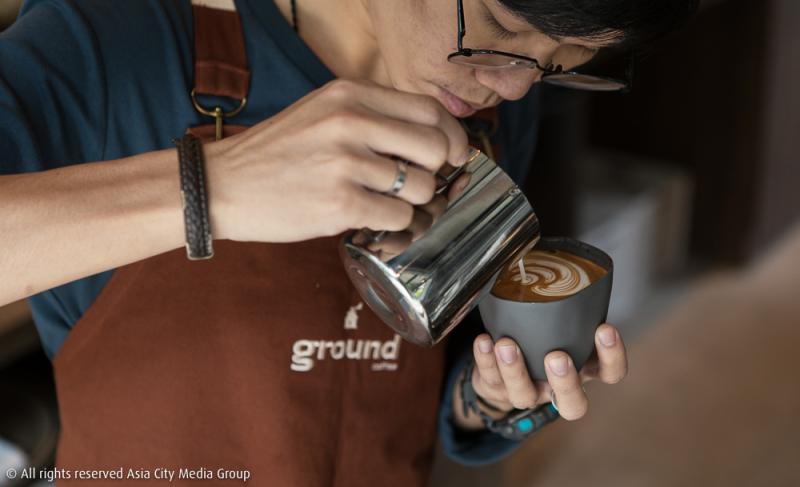 คาเฟ่แห่งนี้นิยามถึงความใส่ใจในเรื่องการชงกาแฟของเขาตั้งแต่การเลือกคำว่า GROUND มาใช้ตั้งชื่อร้าน ซึ่งมีความเชื่อมโยงเปรียบเปรยความพิถีพิถันตั้งแต่กรรมวิธีเริ่มแรกชงกาแฟอย่าง การบด นั่นเอง