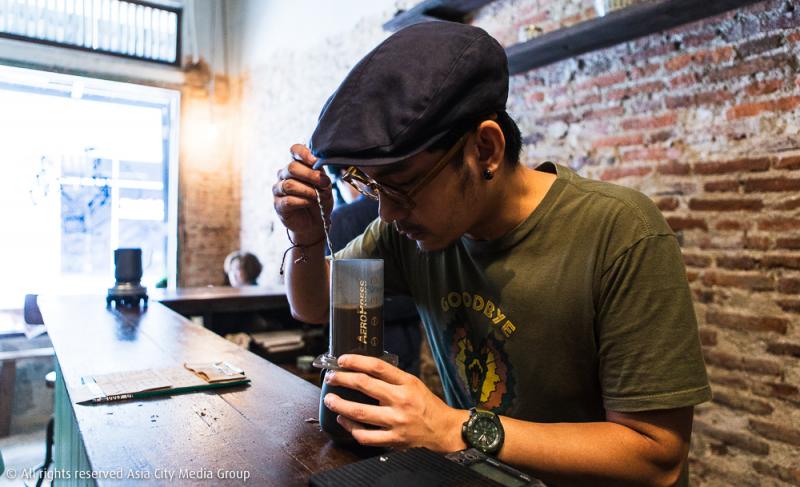 ที่นี่จะเน้นเมนูทำมือเป็นส่วนใหญ่ ด้วยความคราฟท์ของแต่ละเมนูทำให้กลายเป็นเอกลักษณ์สำหรับคาเฟ่ขนาดไม่ใหญ่แห่งนี้ เราจะได้เห็นกระบวนการตั้งแต่การต้มน้ำร้อน การชง และอื่น ๆ อีกมากมายเพลิดเพลินสายตา เครื่องดื่มที่เราได้ลองชิมเป็นกาแฟร้อน (95 บาท) จากเมล็ดที่ร้านเลือกใช้อย่าง el salvador ผ่านกรรมวิธีการชงด้วยอุปกรณ์อย่าง Aeropress อาจจะใช้เวลาในการรอสักนิด แม้จะมองว่าเป็นแค่ตัวกาแฟกับน้ำร้อนก็ตาม แต่การดื่มกาแฟที่เราจะได้เห็นทั้งวิธีการทำ บรรยากาศที่ดี เมล็ดกาแฟคุณภาพเยี่ยมคงเป็นศิลปะการดื่มกาแฟที่ละเมียดละมัยที่คู่ควรกับคอกาแฟอย่างเรา ๆ ดีนะ