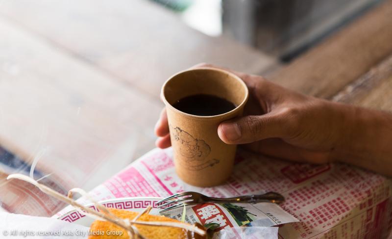 คาเฟ่นี้ใส่ใจสิ่งแวดล้อมด้วยการใช้แก้วที่ย่อยสลายง่าย มีกิมมิกเล็ก ๆ แบบตั้งใจคือ การใช้กระดาษปิดแทนฝาพลาสติก ด้วยความตั้งใจที่ทางร้านนั้นอยากผลิตขยะให้น้อยชิ้นที่สุด จึงไม่อยากให้ลูกค้านั้นใช้หลอด แต่ด้วยรูปแบบการใช้ชีวิตของคนเมืองวิธีการดื่มอาจจะยากลำบากก็สามารถขอหลอดจากทางร้านได้ แต่หากใครที่มาร้านแล้วพกหลอดส่วนตัวมาด้วยก็จะน่ารักมาก ๆ เลย และที่นี่ไม่มีกระดาษปูรองโต๊ะ แต่ใช้หนังสือพิมพ์จีนมาทำที่รองโต๊ะแทน ซึ่งก็หาซื้อได้จากร้านข้าง ๆ นี่เอง เป็นการอุดหนุนชาวชุมชนเดียวกันด้วยนะ ลองดูเมนูที่ประยุกต์มาจากถุงกระดาษนั่นสิเก๋ไม่เบา