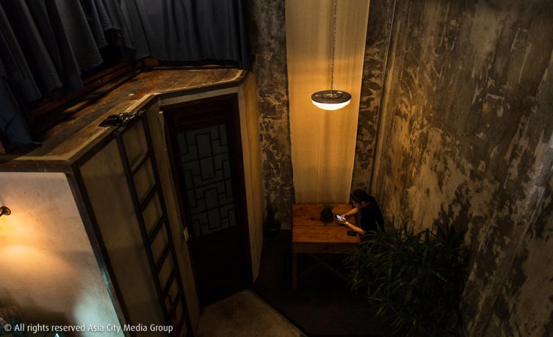 ร้านเลือกใช้ของเก่ามาประดับตกแต่งภายในอาทิ จาน ชาม แก้ว กา ให้ความรู้สึกเก่าแบบจีนสไตล์ เฟอร์นิเจอร์ส่วนใหญ่นั้นเป็นไม้ ทั้งเก้าอี้ โต๊ะ ชั้นวาง ประดับตกแต่งด้วยโคมไฟห้อยระย้าให้แสงสว่างสีนวลจันทร์ ส่วนหน้าบาร์ประกอบขึ้นจากไม้เก่ากว่า 100 ปี หลายคนอาจสะดุดกับฝาผนังที่มีตัวอักษรจีนเด่น ๆ ที่ได้ลายมือเพื่อนบ้านร้านข้าง ๆ เขียนให้ สื่อความหมายเป็นคำอวยพรให้ผู้มาใช้บริการ โดยรวมแล้วคาเฟ่แห่งนี้มีความเป็นสไตล์จีนรวมกว่า 70% กลมกลืนกับความเป็นชุมชนในย่านนี้แบบลงตัวกลมกลืน