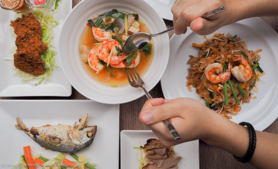ส่วนคออาหารไทยก็ไม่ต้องกังวลไป เพราะที่นี่ก็มีเสิร์ฟเหมือนกัน ทาง 4K Cafe เน้นมากว่าให้ลองสั่งเมนูซิกเนเจอร์อย่างครอสทูข้าวปลาทูพริกสด (200 บาท) ที่หน้าตาก็ดูเหมือนข้าวผัดพริกสดกับปลาทูทอดธรรมดา ๆ แต่รสชาติดีเฉยเลย เอาจริงคือปลาทูเค็มกว่าที่คิด แต่พอกินกับข้าวแล้วรสชาติกำลังดีเข้าท่า นอกจากนั้นก็ยังลองเมนูอื่น ๆ อย่างผัดไทยกุ้งสด (180 บาท) ต้มยำกุ้ง (250 บาท) ทอดมันปลา (180 บาท) มาชิมไปด้วย