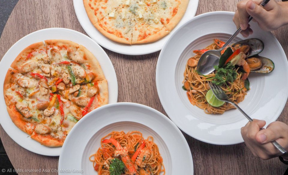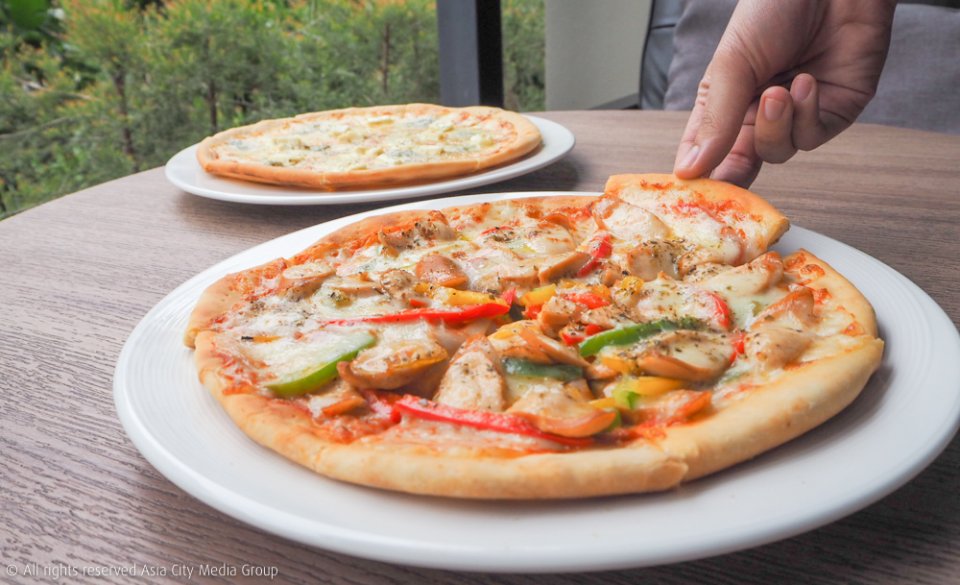 แต่ที่เราหลงรักคือพิซซ่าที่มาในขนาดใหญ่จนตกใจเพราะราคาไม่แพงจนเดาเอาเองว่าน่าจะมาเพลทเล็ก ๆ เราสั่งพิซซ่าไส้กรอกไก่ (190 บาท) และพิซซ่าโฟร์ชีส (300 บาท) ที่ชีสมาแน่นมาก ใครไม่ชอบบลูชีสอาจได้กลิ่นแรงไปนิด แต่สายชีสอย่างเราเรียกว่ากินคำนึงแล้วลงไปนอนไหลกับพื้นเลย บ้าบอสุด ปลื้ม