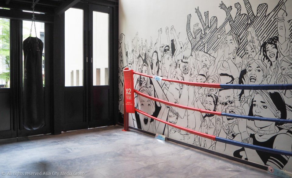 แม้ว่าห้องพักของที่นี่จะเป็นห้องพักแบบมาตรฐานโรงแรม (ที่ครบครัน) ทั่ว ๆ ไป แต่ความพิเศษอยู่ที่ X2 สาขานี้ทำให้เรารู้สึกเหมือนมาใช้ชีวิตมากกว่าการนอกพักค้างคืนเฉย ๆ เพราะภายในโรงแรมมีกิจกรรมต่าง ๆ เยอะแยะเต็มไปหมด แค่เดินเข้าประตูมาก็เจอกระสอบทรายพร้อมนวมหลายคู่วางอยู่ให้ได้ลองฝึกแม่ไม้มวยไทยกันแล้ว พอเจออะไรชวนเซอร์ไฟรส์แบบที่คิดว่าไม่น่าจะมาเจออะไรแบบนี้ตั้งอยู่กลางโรงแรม ก็เลยมั่นใจว่าที่นี่จะต้องมีอะไรไม่ธรรมดาซ่อนอยู่แน่นอน