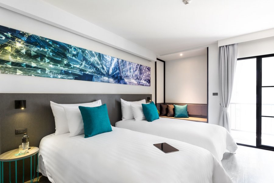อาจเป็นเพราะ X2 Vibe Bangkok Sukhumvit Hotel เขาวางตัวไว้ว่าเป็น "โรงแรมที่นักท่องเที่ยวกลุ่มมิลเลนเนียลจะเลือกพัก" ซึ่งแหงล่ะว่ากลุ่มนี้เอาใจง่ายที่ไหน ถ้าไม่ถูกใจและธรรมดาเกินไป (รวมไปถึงหวือหวามากไป) ก็อาจไม่ถูกจริตคนกลุ่มนี้ก็ได้ ที่นี่จึงเหมือนจะสังเกตคนกลุ่มนี้มาอย่างดีแล้ว จึงจัดอะไรที่เก๋ ๆ มามิกซ์กับความธรรมดาในภาคบังคับแบบที่ควรจะเป็นไปด้วย อย่างห้องพักที่นี่ก็ไม่ได้จัดจ้านอะไร ทั้ง 121 ห้องล้วนจัดออกมาอย่างเรียบง่าย แต่ก็เพียงพอแล้วที่อำนวยความสะดวกในการพักผ่อนให้กับเรา มีให้เลือกทั้งห้องแบบสแตนดาร์ด ห้องซูพีเรีย และห้องสวีท เราชอบโทนสีของห้องที่ออกไปทางเอิร์ธโทน การใช้วัสดุคล้ายคลึงธรรมชาติ และคลุมโทนสีไว้อย่างสบายตา เลยทำให้การทิ้งตัวลงนอนบนเตียงในห้องที่นี่เหมือนได้มาพักผ่อนจริง ๆ เอาจริง ๆ บางครั้งเราก็ไม่ต้องการอะไรมากนักหรอก แค่ได้เปลี่ยนที่นอนใหม่ ๆ และใช้เวลาพักผ่อนไปกับมันจริง ๆ ก็พอแล้ว