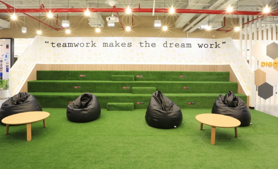 ใครที่อยากใช้ห้องประชุมแบบจริงจัง ก็จงพุ่งมาที่ห้องประชุม Agile room พื้นที่ระดมสมองและรวมไอเดีย ส่วนคนที่ต้องทำงานข้ามทีมไปมา ก็จะได้ใช้โซน Meeting someone with the same mindset as you is rare บ่อย ๆ ยิ่งถ้าประชุมไปประชุมมาแล้วชักหิว เค้าก็มีห้องอาหารเก๋ ๆ อย่าง We just like to get together and have a laugh ให้มานั่งชิลกินอาหารด้วยกัน พร้อมมองวิวแม่น้ำเจ้าพระยาจากฝั่งตรงข้ามได้อีกด้วยนะ