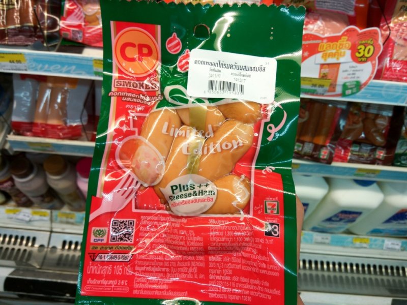 เมนูรับเทศกาลจาก CP ที่ทีแรกงงกับชื่อและส่วนผสมมาก คือมันเป็นไส้กรอกคอกเทลที่ทำมาจากอกไก่รมควัน แถมยังผมสแฮมและชีสเข้าไปอีกด้วยนะ เรียกได้ว่าคำเดียวก็คล้ายกับได้กินเมนูด้านบนแบบครบถ้วนไปแล้ว ซึ่งเราลองแล้วก็อร่อยดี แต่ต้องตั้งใจรับรสหน่อยนะถึงจะหาทั้งหมดเจอ