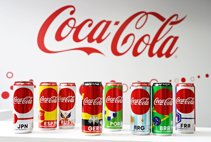 เริ่มต้นด้วยน้ำสีดำมีฟองกระป๋องแดง ถือได้ว่าเป็นเจ้าเก่าขาประจำมหกรรมฟุตบอลโลกมาเป็นเวลานานกว่า 40 ปีแล้ว สำหรับแบรนด์สินค้าถือกำเนิดเมื่อสมัยสงครามโลกอย่าง โค้ก เครื่องดื่มอัดลมที่ผลิตสินค้าออกมาต้อนรับฟุตบอลโลกได้อย่างน่าสะสมทุกครั้งไป ปีนี้มากับลายธงชาติทีมยอดฮิตของแฟนบอลทั่วโลกทั้ง 8 บวกกับลายพิเศษธงชาติอังกฤษ ทีมขวัญใจชาวไทย ประดับอยู่บนกระป๋อง อย่าลืมไปตามเก็บสะสมกันนะทุกคน
