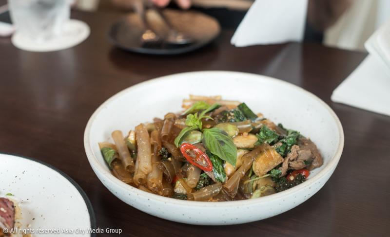 ต่อด้วย ผัดเซี่ยงไฮ้ขี้เมาเนื้อฮิมาวาริ (320 บาท) เสิร์ฟเส้นเซี่ยงไฮ้ที่หาทานยากมาพร้อมกับเนื้อฮิมาวาริชิ้นโต