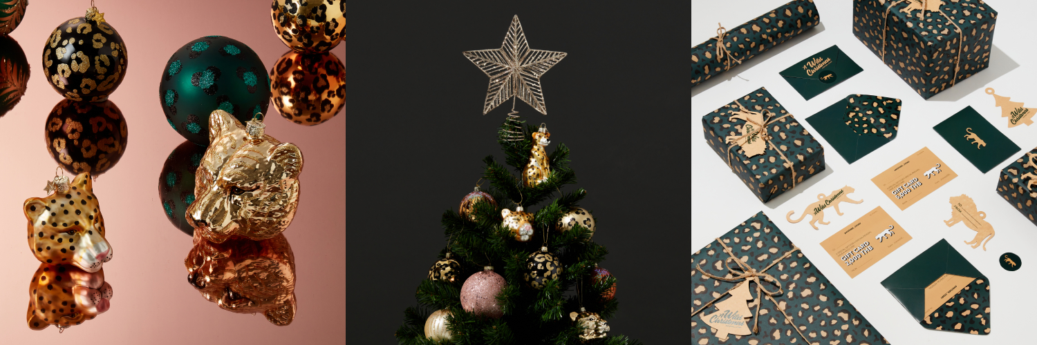 ความ Wild ที่ว่านี้ก็คือเขาใช้ลายพรินต์เสือดาว ลายพืชพันธุ์ธรรมชาติ และสีดำ-เขียว-ทอง มาทำเป็นออร์นาเมนต์ทรงกลม ขณะที่ออร์นาเมนต์ทรงอื่น ๆ เขาก็ทำเป็นรูปสิงสาราสัตว์ ทั้งเสือโคร่ง เสือดำ จิ้งจอก กระรอก และฮัมมิงเบิร์ด ออกมาทั้งโฉบเฉี่ยว ทั้งน่ารัก เป็นคริสต์มาสที่เต็มไปด้วยจินตนาการ เหมือนดึงเราเข้าไปอยู่ในหนังสือนิทานยังไงยังงั้น