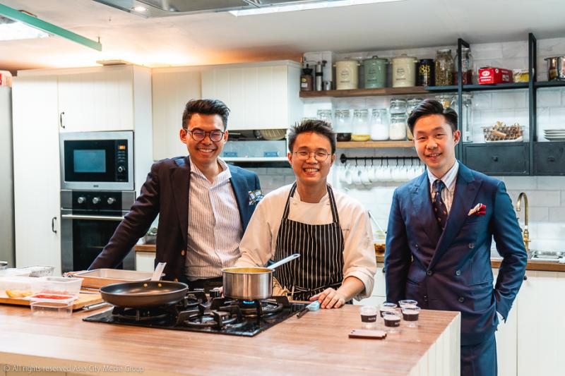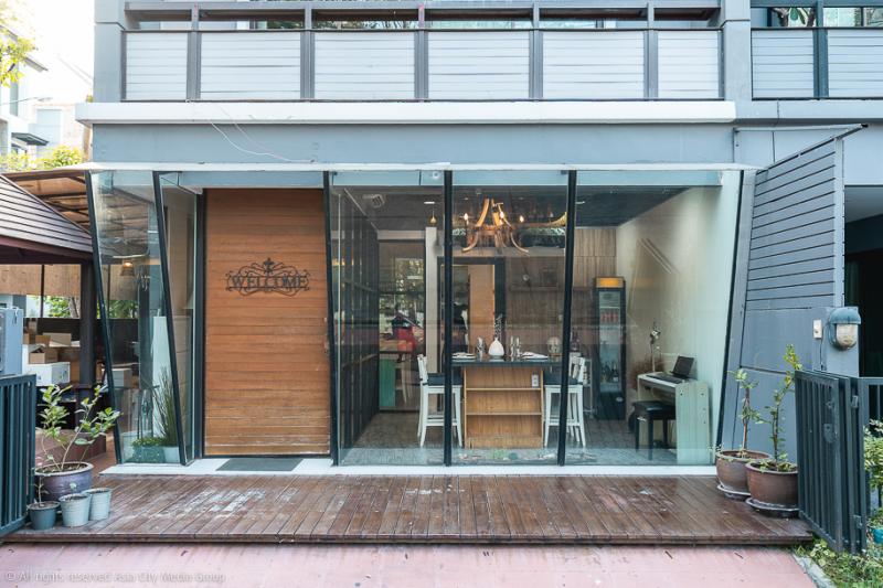 บ้านหลังเล็กไซซ์กะทัดรัดในโครงการหมู่บ้านจัดสรรย่านห้วยขวางถูกจับมาแปลงโฉมทำเป็นคุกกิ้งสตูดิโอขนาดย่อม แบ่งพื้นที่ครึ่ง ๆ ระหว่างส่วนครัวและโต๊ะอาหารขนาดใหญ่กลางร้าน เด็กหนุ่มไฟแรงหุ้นส่วนร้านทั้งสามคนแบ่งหน้าที่รับผิดชอบกันอย่างเป็นระบบ โดยมี คุณไมค์-ภัทรพล สวัสดี และ คุณอั๊พ-วสวัตติ์ ไชยเนตร คอยดูแลลูกค้าตั้งแต่หน้าประตู ในคอสตูมชุดสูทคัตติ้งเนี้ยบ และต้อนรับเราด้วยแชมเปญที่รินมาเต็มแก้ว