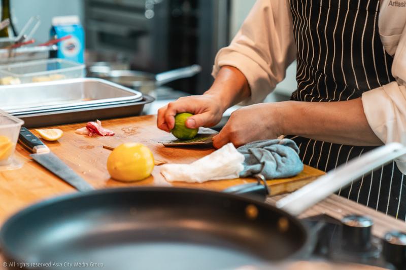 ส่วนหุ้นอีกคนอย่าง คุณบิ๊ก-อรรถสิทธิ์ พัฒนเสถียรกุล รับหน้าที่เป็นเฮดเชฟ ยืนประจำการอยู่หลังครัวแบบโอเพนคิตเชน คอยตระเตรียมเมนูที่จะเสิร์ฟให้เราได้ชิมกัน ส่วนใครที่คุณหน้าเชฟบิ๊ก เราคงต้องเล่ายาวไปถึงสตอรี่ในวงการอาหารตั้งแต่การเป็นเชฟของร้าน Gaggan เลยไปจนถึงการไปเรียนต่อด้านทำอาหารในสถาบันชื่อดังอย่าง CAAS ที่สวิตเซอร์แลนด์ ต่อด้วยการเป็นเชฟในร้านอาหารฝรั่งเศสสไตล์คลาสสิกติดดาวมิชลินที่นครเจนีวา จนมาจบที่การกลับมาทำเชฟส์เทเบิลของตัวเองร่วมกับเพื่อน ๆ ในไทยนั่นเอง