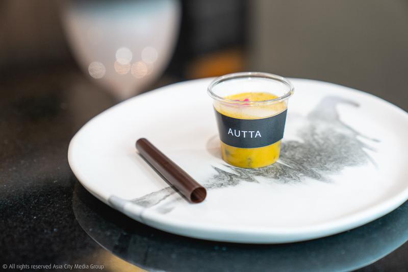 ด้วยความเป็น Autta (อัตตา) การทำเสนอตัวตนของหุ้นส่วนทั้งสามผ่านจานอาหารเลยถูกซ่อนไว้แบบไม่โฉ่งฉ่าง ภายใต้อาหารแต่ละคอร์สที่ทยอยเอาออกมาเสิร์ฟ เริ่มจาก Amuse Bouche เรียกน้ำย่อยจานแรกที่เป็นซุปแคร์รอตเนื้อครีมมี่รสติดเปรี้ยวจากการใส่ตะไคร้และมะนาวลงไป มีความเซอร์ไพรส์อยู่ตรงวิธีการกิน ที่ให้ดูดผ่านหลอดขนาดใหญ่ ซึ่งแต่ละคำที่เข้าปากก็จะมีเจ้าไข่ปลาเรียวเซียวดองซีอิ๊วด้านล่างติดขึ้นมาด้วย