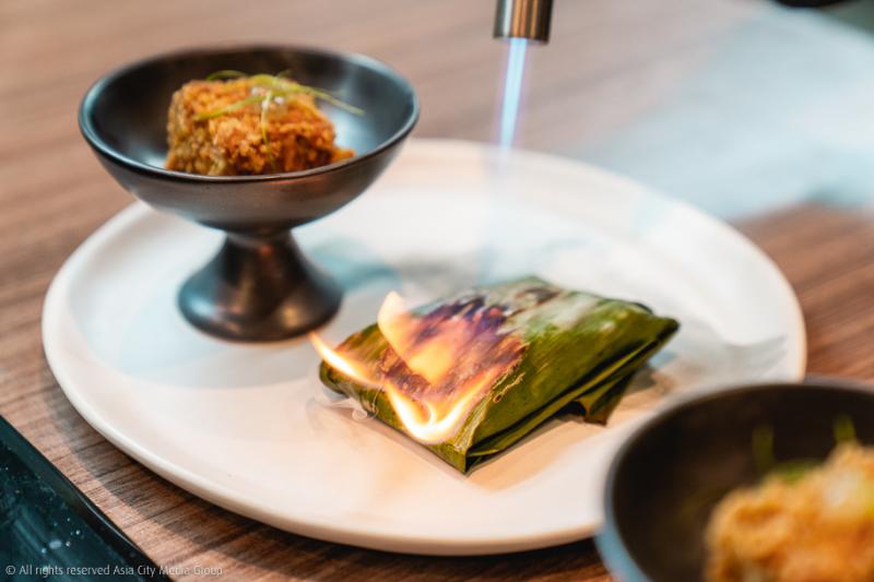 ปอเปี๊ยะทอดหน้าตาสู้กล้องที่ถูกนำมาเล่าใหม่ด้วยเทคนิควัยรุ่นอย่างการสอดไส้ยำกรรเชียงปูม้า ท็อปด้วยเจลลี่ปลาดาชิและแซฟฟรอนจากแคชเมียร์ รวมถึงเพิ่มซอสเจลซิตรัส เข้ากันดีกับความเค็มของเนื้อสัตว์ทะเล ถือเป็นการย้อนวันวานของ Third Culture Kid ได้ดี พอ ๆ กับเมนูหลานรักแห่งตระกูลคนจีนอย่างซุปไก่ดำสูตรอาม่า ที่เลือกใช้เทคนิคสมัยใหม่อย่าง Double Boiler มาตุ๋นซี่โครงไก่ดำถึง 42 ชั่วโมง ผสมรวมกับสูตรโบราณตำรับอาม่าด้วยเครื่องยาจีนพิเศษ ที่ชอบมาก ๆ คือมีไข่ตุ๋นนุ่มนิ่มรองอยู่ด้านล่างและหอยเป๋าฮื้อตัวโตให้ได้เคี้ยวเพลิน ๆ ระหว่างซดน้ำซุปด้วย