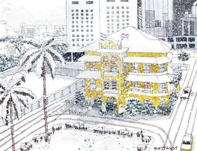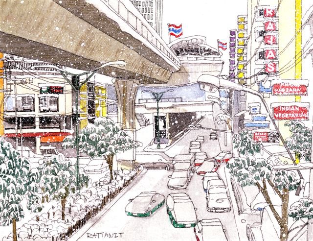 ใครไม่คิดก็ไม่เป็นไร แต่คุณฝรั่ง Tim Cornwall เขาคิด และนี่คือจินตนาการอันกว้างไกลถ้าวันใดหิมะเกิดตกในกรุงเทพฯ จริง ๆ