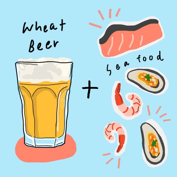 นอกจากกลิ่นหอมเอกลักษณ์ของ Wheat Beer จะทำให้หลายคนติดใจดื่มเป็นประจำอยู่แล้ว เพราะความสดชื่น ดื่มง่าย ด้วยกลิ่นและรสชาติที่เป็นเอกลักษณ์เฉพาะ จากความหอมหวานอ่อนๆ จากของมอลท์ พร้อมรสเปรี้ยวบางๆ และตามด้วยรสเผ็ดซ่าเล็กน้อยจากสมุนไพร อย่างเมล็ดผักชี และเปลือกส้มตากแห้ง ทำให้ช่วยดึงรสเค็มและความหวานธรรมชาติในอาหารทะเลสดๆ ได้อย่างดีเยี่ยม แถมเมื่อเราได้ดื่มคู่ไปพร้อมๆ กันกับซีฟู้ด ยังช่วยส่งเสริมรสชาติซึ่งกันและกัน ทำให้เราได้รับรู้รสชาติจากท้องทะเลได้อย่างเต็มๆ