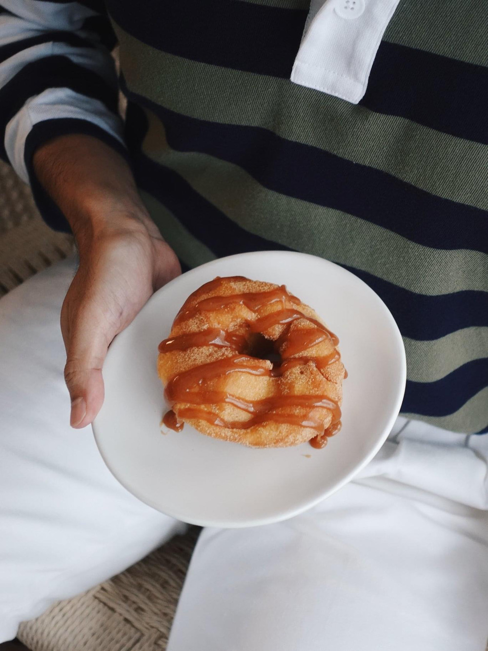 หากไม่รู้ว่าจะเลือกโดนัทรสไหนไปจอยกับแก๊งสามสหายดี เราก็อยากแนะนำให้ลองโดนัทรสชาติพิเศษอย่าง Burnt Caramel Salted Sugar Cinnamon ที่ทางร้านเสิร์ฟเป็นเมนูพิเศษคู่กับนิทรรศการครั้งนี้ โดยเจ้าโดนัทรสพิเศษนี้ก็มาพร้อมกับรสชาติทานง่าย หอมกลิ่นคาราเมลเบิร์น หวานนิดหน่อยแกล้มเค็มเบา ๆ ตัดรส สั่งมาทานคู่กับกาแฟดำเข้ากันที่สุด ซึ่งทางร้านแอบกระซิบมาว่าเมนูดูโอ้นี้เป็นการจับคู่โดนัทกับเครื่องดื่มในแบบที่คุณศิลปิน BHBH เขาชอบด้วยล่ะ!
