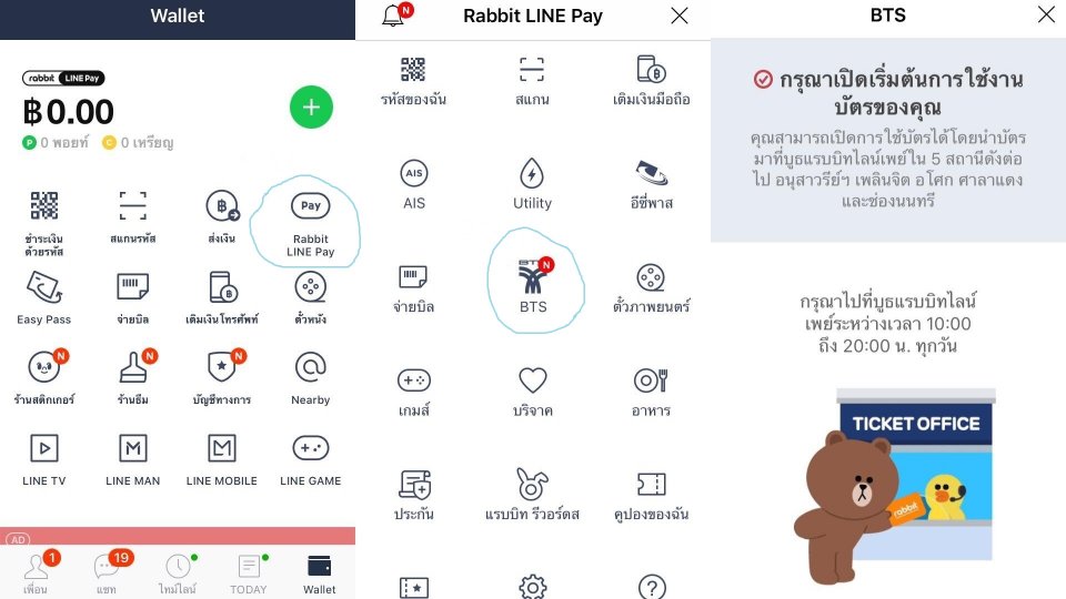 โดยเราสามารถทําการสมัครผ่านขั้นตอนง่าย ๆ โดยการเข้าไปที่ Wallet ของแอพ LINE จากนั้นก็เลือกเข้าไปที่ฟีเจอร์ใหม่ล่าสุดอย่าง BTS แล้วทําตามขั้นตอนต่าง ๆ ในระบบไม่ว่าจะเป็น การกรอกเลข 13 หลักบนบัตร Rabbit ของเรา เลือกวิธีชําระเงิน ฯลฯ ซึ่งนอกจากจะชําระผ่าน Rabbit LINE Pay ปกติแล้วยังสามารถเลือกหักเงินจากบัตรเครดิตได้อีกด้วย จุดพลุฉลองให้อีกรอบเลย ! และหลังจากลงทะเบียนต่าง ๆ เรียบร้อยก็นําบัตรไปเปิดการใช้งานได้ที่เคาน์เตอร์ของ BTS (ต้องใช้เงินและเที่ยวในบัตรที่เหลืออยู่ให้หมดก่อนนําไปเปิดใช้บริการ) โดยในตอนนี้มีอยู่ทั้งหมด 5 สถานีที่ทําการเปิดบัตรให้ได้คือ อนุเสาวรีย์ฯ เพลินจิต อโศก ศาลาแดง และช่องนนทรี ในช่วงเวลา 10:00 - 20:00 น.