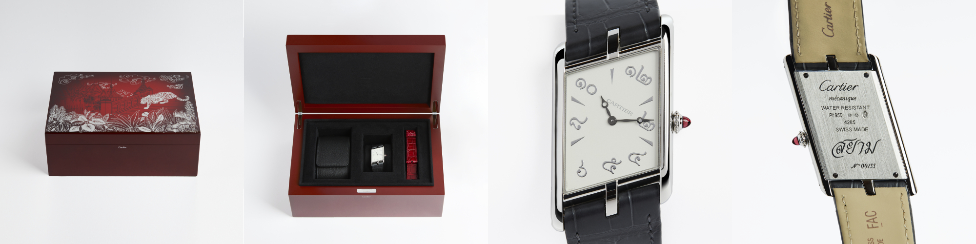 ประตูไม้โค้ง เครื่องเรือนบุไหมไทย ประติมากรรมนูนต่ำรูปวัดวาอาราม และแชนเดอเลียร์สายฝนที่สื่อถึงอากาศในบ้านเรา ล้วนแต่เป็นดีเทลที่ทำขึ้นเฉพาะสำหรับแฟล็กชิปแห่งนี้เท่านั้น ซึ่งตอนนี้ถือเป็นที่แรกและที่เดียวในโลกที่มีดีไซน์สุดเอ็กซคลูซีฟแบบนี้ ยิ่งพอมีการเปิดตัวนาฬิการุ่นพิเศษอย่าง Tank Asymétrique Siam Limited Edition ที่มีหน้าปัดตัวเลขไทย ด้านหลังสลักข้อความ 'สยาม' และระบุหมายเลขลำดับการผลิต ที่มีแค่ 55 เรือนเท่านั้น (และน่าจะมีผู้จองครบแล้ว) ด้วยแล้ว ยิ่งอินกับความเป็น Cartier และหน้าประวัติศาสตร์ของแบรนด์ในประเทศไทยเข้าไปใหญ่