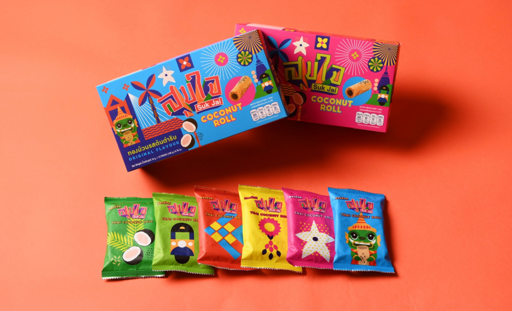 สำหรับแพ็กเกจก็เน้นความเป็นไทยสมัยใหม่ สีสันสดใส โดย 1 กล่อง มีขนม 12 ชิ้น มาในกล่อง 2 สี ชมพู-ฟ้า ให้เลือกตามชอบ ซึ่งจากรูปลักษณ์ที่ดูดีขนาดนี้ ทำให้ทองม้วนรสออริจินอลในแบบป้าตือยิ่งเหมาะจะซื้อเป็นของฝาก ของมงคล ตามความเชื่อในสมัยโบราณเข้าไปอีก โดยแต่เดิม 'ทองม้วน' นั้นสื่อถึงความมั่งมี มั่งคั่ง ร่ำรวย พอยิ่งมาบวกกับชื่อ 'สุขใจ' อย่างนี้ยิ่งเริ่ด!