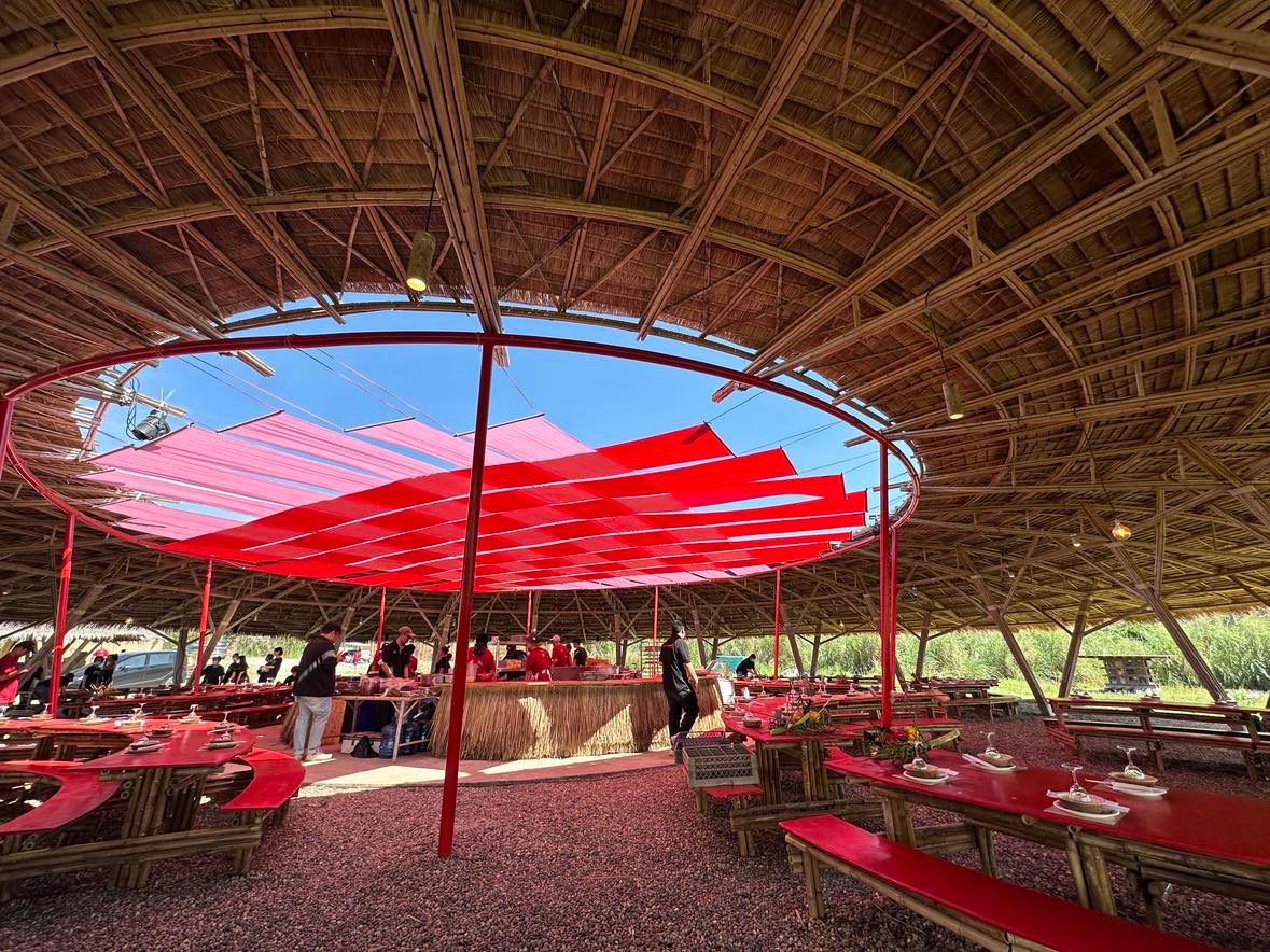 เราว่าความน่ารักอีกอย่างของคอร์สเชฟเทเบิ้ลในวันเดอร์ฟรุตคือการได้เจอเพื่อนใหม่ที่แชร์ประสบการณ์มื้ออาหารร่วมกันจากการออกแบบผังที่นั่งในพาวิลเลียนอาหารไม้ไผ่ (Theatre of Feast) ให้เป็นแบบโต๊ะยาวสไตล์แคนทีน ล้อมรอบครัวโอเพ่นแอร์ทรงกลมที่อยู่ตรงกลางลาน สามารถมองเห็นเชฟทำอาหารได้จากทุกทิศ และที่ชอบมาก ๆ คือคอร์สเชฟเทเบิ้ลของปีนี้เลือกที่จะเสิร์ฟไวน์แบบ Free Flow สำหรับแขกทุกท่านที่จองมา ซึ่งด้วยสนนราคาหัวละ 3,500 บาทของคอร์สนี้ เอาเป็นว่าแค่มานั่งจิบไวน์ก็คุ้มแล้ว!