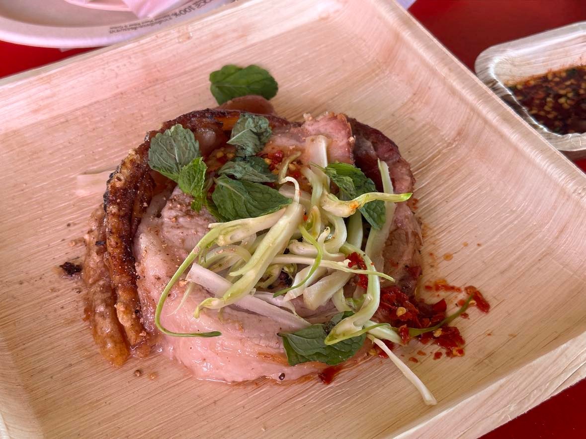 มื้อเที่ยงของงาน Wonderfruit 2022 ในรอบสุดท้ายนี้ เราเลยจะเห็นการจับเอาซูกินีมาทำเป็นตำซั่วพร้อมน้ำปลาร้านัว ๆ ตำรับอุบลราชธานีตามสูตรของบ้านเชฟอีฟ รวมถึงการหยิบเอาลาบก้อยมาเสิร์ฟในสไตล์ทาร์ทาร์ และคาลามารี่ที่อร่อยกว่าปกติไปหลายเบอร์มาก ๆ เนื่องจากใช้ผงสมุนไพรท้องถิ่นจากภาคอีสานมาหมักปลาหมึกและคลุกแป้งทอดกรอบ