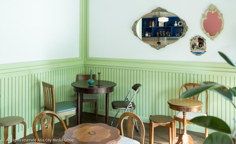 โดยเกิดเป็นคาเฟ่ที่มีองค์ประกอบอันเกิดจากการผสมผสานหลากสไตล์เข้าด้วยกัน อย่างในด้านการตกแต่ง คุณเมย์ก็เป็นคนวางคอนเซปต์ร้านเองกับมือ โดยผสมดีไซน์หลายแบบ ตั้งแต่ เรียบ ๆ แบบ Minimal, ชิค ๆ แบบ Loft และหรูหราในแบบฝรั่งเศส ถ้าเราสังเกตภายในร้านก็จะเห็นได้ว่าแต่ละมุมนั้นไม่เหมือนกันเลย ตั้งแต่สีกำแพง การวางชุดเฟอร์นิเจอร์ การวางต้นไม้ การวางของตกแต่ง การปูกระเบื้อง เรียกได้ว่าถ่ายมุมไหนก็ไม่ซ้ำแน่นอน รวมถึงโซนด้านหลังร้านก็เป็นครัวแบบเปิดที่อบขนมให้ดูกันสด ๆ ตรงนั้นเลย เพิ่มบรรยากาศโฮมมี่ให้กับร้านไปอีก
