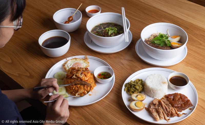ใครมาคนเดียวก็เต้น Solo แล้วเดินไปสั่งอาหารจานเดี่ยวกันเลย เพราะเขามีร้านเด็ด ๆ ทั้งข้าวทั้งก๋วยเตี๋ยวแบบครบครัน พักเที่ยงแว้บมากินข้าวคนเดียวจะกี่วันก็ไม่มีเบื่อเลยขอบอก และร้านที่เราจะมาแนะนำก็จะมี ร้านกินดีอาหารตามสั่ง กับข้าวผัดต้มยำทะเล (70 บาท) ที่ท็อปด้วยเหล่าหมึก กุ้ง และไข่ดาวกรอบ ๆ ต่อมาที่ ร้านก๋วยเตี๋ยวลูกชิ้นดิสโก้ กับเกาเหลาเนื้อรวมน้ำตก (85 บาท) ซึ่งความเด็ดของชามนี้ก็คือเครื่องจำพวกลูกชิ้น เนื้อ และหมู เขาทำสดใหม่วันต่อวัน อีกหนึ่งร้านสำหรับสายเส้น ระตะมาก๋วยเตี๋ยวเป็ด เจ้าดังจากหัวหินที่มาพร้อมกับก๋วยเตี๋ยวเป็ดตุ๋นไส้แก้ว (100 บาท) ชามนี้โดดเด่นด้วยน่องเป็ดชิ้นใหญ่ทานกับน้ำซุปรสกลมกล่อม และร้านสุดท้าย ขาหมูนครปฐม กับข้าวขาหมู (55 บาท) ที่มีอาวุธเป็นน้ำราดสูตรเข้มข้นจากเครื่องตุ๋นยาจีนกว่า 12 ชนิด