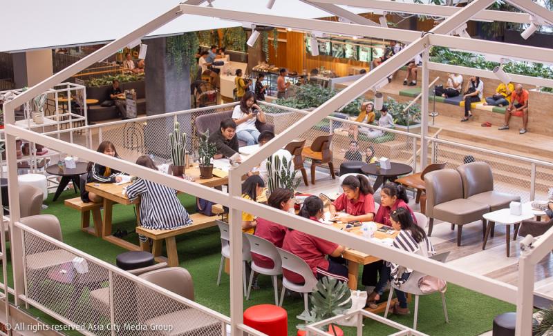 ขอพูดถึงการตกแต่งกันหน่อย เพราะสิ่งแรกที่ใครเดินเข้ามาก็ต้องร้องอู้วหูว ก็คือรูปโฉมที่เปลี่ยนแปลงไปในระดับปฏิวัติวงการศูนย์อาหาร โดยมีการตกแต่งใหม่ให้เป็นโทนสว่าง แซมด้วยเสาและเฟอร์นิเจอร์ไม้อย่างโต๊ะและเก้าอี้ที่รองรับได้ถึง 1,000 ที่นั่ง นอกจากนี้ยังเพิ่มสีเขียวให้พื้นที่ด้วยต้นไม้ ใครมานั่งก็จะรู้สึกโล่ง โปร่ง สบาย และผ่อนคลายเหมือนอยู่บ้าน นอกจากนี้เขายังจัดพื้นที่ Co-Working Space ที่สามารถนั่งได้ทั้งวัน แถมยังมีปลั๊กไฟบริการ คอมฯ แบตหมดก็ชาร์ตทำงานต่อได้เลย ร้านก็ดี พื้นที่ก็สวย มื้อเที่ยงมื้อเย็นไม่ต้องไปไหนไกลแล้ว แวะ Gourmet Eats The Mall งามวงศ์วาน เนี่ยแหล่ะครบจบในที่เดียว