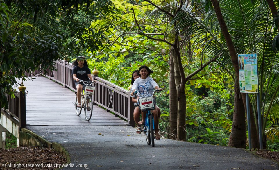 พื้นที่ที่ล้อมรอบไปด้วยต้นไม้นานาพรรณ สีเขียวที่ช่วยให้เราได้ล้างปอดฟอกไตให้สะอาด เช่าจักรยานไปปั่นรับลมชมวิว ถ่ายรูปไปอวดเพื่อนในโซเชียล หรือจะแวะพักรัปประทานอาหารที่นั่นก็บรรยากาศดีต่อใจแบบสุด ๆ จบทริปด้วยสถานที่ที่มีความร่มรื่น อากาศถ่ายเท เต็มไปด้วยธรรมชาติให้พักกายพักใจ ใครจะเดินทางกลับบ้านเลยก็ไม่มีใครขัดข้อง หรือส่วนใครที่ติดลมอยากอยู่ต่อก็ยังสามารถหาที่พัก รีสอร์ท โฮมสเตย์ ขึ้นชื่อแถวนั้นไว้เติมพลังงานชีวิตอีกสักนิดอีกสักหน่อยสวรรค์น้อย ๆ อยู่ในวันไม่ต้องทำงานก็ย่อมได้