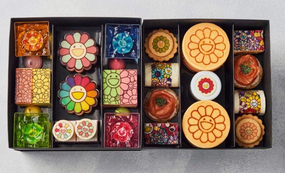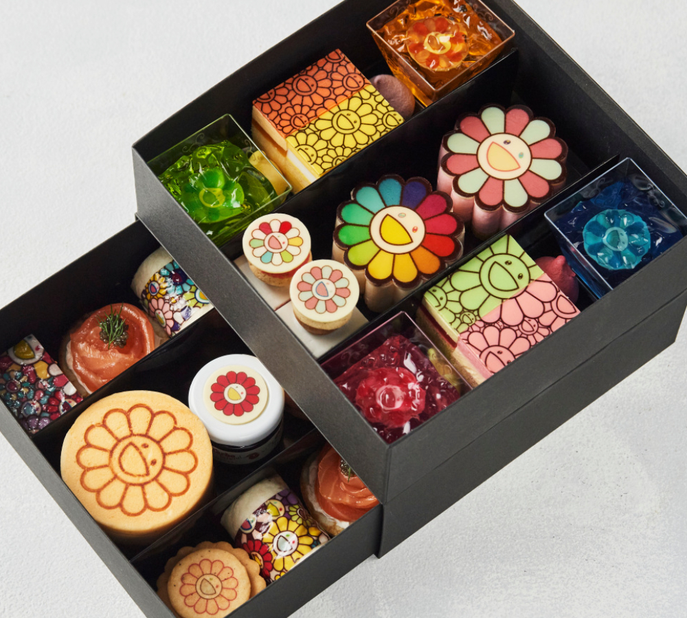 แน่นอนว่าอาร์ตเวิร์กซิกเนเจอร์ของมุราคามิอย่างเจ้า 'ดอกมุราคามิ' ดอกไม้ยิ้มแฉ่งสีสันสดใส ต้องกลายมาเป็นหัวใจสำคัญของดีไซน์ทั้งหมด ซึ่งก็ประกอบไปด้วยขนมคาวหวานอย่าง สโคน คุกกี้ ชอร์ตเค้ก มูสเค้ก พุดดิ้ง พาร์เฟต์ ตอร์ติยาทรัฟเฟิล และเฟรนช์โทสต์ฟัวกรา ฯลฯ โดยทั้งหมดทำออกจากครัวระดับรางวัลนานาชาติของร้านเบเกอรี่ Fiorentina Pastry Boutique ของทางโรงแรม มั่นใจได้เลยว่าน่ารักแล้วยังอร่อยตามมาตรฐานชัวร์!