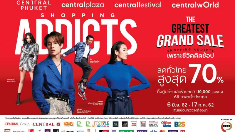 The Greatest Grand Sale Shopping Addicts 6 มิ.ย.-17 ก.ค. ที่เซ็นทรัลพลาซ่าทุกสาขา เซ็นทรัลเฟสติวัลทุกสาขา เซ็นทรัลเวิลด์ และเซ็นทรัลภูเก็ต และทางออนไลน์ได้ที่ central.co.th