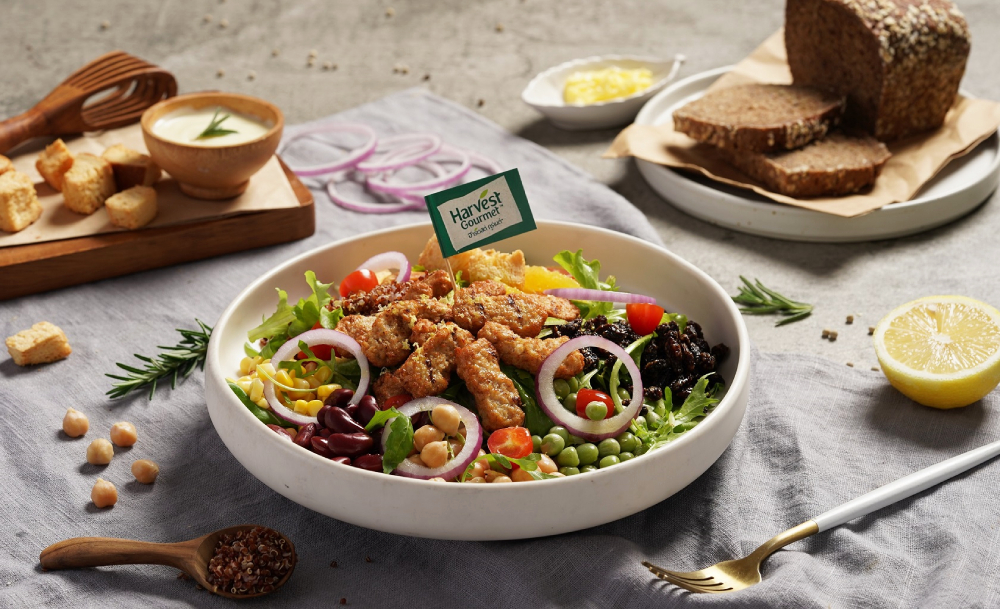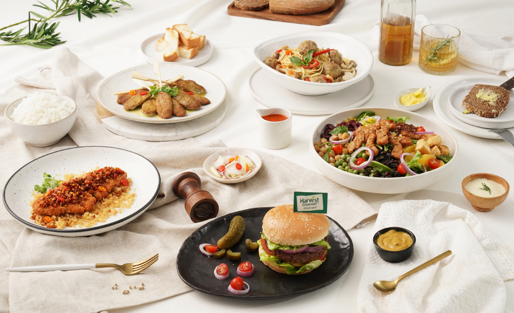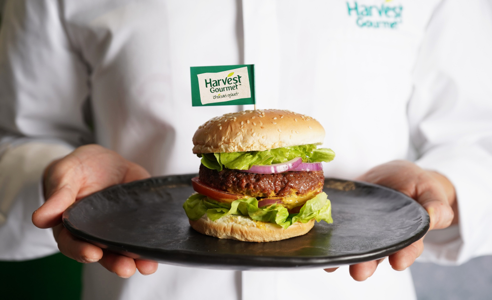 ฮาร์เวสต์ กูร์เมต์ บอกว่าอาหารประเภทเนื้อจากพืชมีข้อดีตรงที่โปรตีนสูง มีใยอาหาร ไม่ใส่วัตถุกันเสียและสีสังเคราะห์ โดยใช้เบสวัตถุดิบจากพืชตระกูลถั่วเป็นหลัก แล้วนำมาแต่งสีธรรมชาติ เช่น สีจากบีตรูตหรือแคร์รอตสกัด เพิ่มเนื้อสัมผัสชุ่มฉ่ำด้วยน้ำมันมะพร้าว ทำให้เนื้อจากพืชไม่แห้ง และชูรสทุกเมนูได้อย่างกลมกล่อม