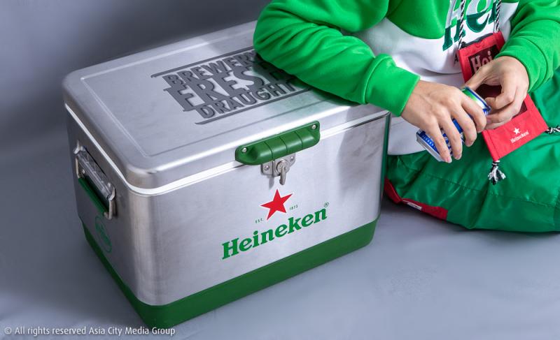 เห็นกล่องเก็บความเย็นไซซ์ยิ่งใหญ่อลังการสีเงิน-เขียวมาแบบนี้ ไม่บอกก็ต้องรู้แหละว่าข้างในเป็นเบียร์อะไร! ซึ่งนอกจากความดีงามในการกักเก็บความเย็นให้เบียร์ Heineken® ของเราเย็นอยู่เสมอแล้ว ที่เก๋มาก ๆ คือนางมีความน้ำหนักเบาเหลือเชื่อ ทีนี้จะออกไปปิกนิกหรือแคมปิงที่ไหนก็ไม่ต้องเกี่ยงกันแบกกล่องเบียร์อีกแล้ว ถ้าจะดีไซน์สวยและเท่ แถมน้ำหนักเบาขนาดนี้ เราขออาสาเป็นคนถือเอง!