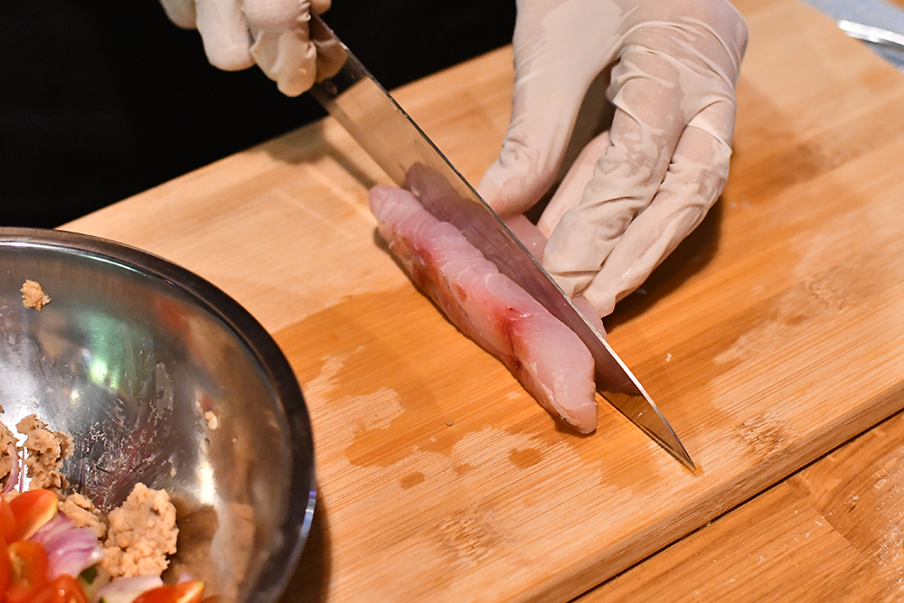 อย่างรอบเดือนที่แล้วที่จัดเป็นคอร์สฝึกทำเมนูอาหารอิตาเลียนสุดเอ็กซคลูซีฟ เราก็มีโอกาสได้ไปแจมคลาสนี้ โดยมีไฮไลต์คือการได้เชฟ Anna Borrasi เฮดเชฟใหญ่ชาวอิตาเลียนแท้ ๆ มาลงมือสอนเองกับมือ เริ่มจากการเรียนทำ Frisella Napoletana Con Tartare di Ombrina หรือเมนูเรียกน้ำย่อยสุดสดชื่นที่เหมาะมาก ๆ กับหน้าร้อนนี้ โดยเชฟจะเริ่มสอนตั้งแต่พาร์ตเบสิกอย่างวิธีหั่นเนื้อปลาทูน่าให้ถูกวิธี ไปจนถึงเทคนิคการปรุงขนมปังฉบับคนอิตาเลียนแท้ ๆ จนได้เป็นจานรองท้องที่เราติดใจจนกลับเอามาทำกินเองที่บ้านเลยทีเดียว